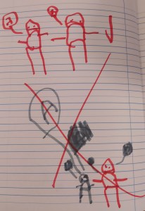 זה לא טריוויאלי לגדל ילדה שמרגישה אזרחית שוות זכויות בשפה כי זה מחייב התגברות על מנהגים שגורים שמרגישים לנו טבעיים לגמרי, כמו לדבר לידה באנגלית או לדבר לה מעל הראש. זה לא הרגל שקל לשנות אבל אני חושבת שברגע שמתחילים לשים אליו לב הוא הופך יותר ויותר מוזר, פחות ופחות טבעי. כאמור, גם עבורי מדובר בהרגל שטרם התגברתי עליו לגמרי, אבל אני יכולה להעיד שהניסיון להאבק בו שינה לא רק את האופן שבו אני מדברת ליד הילד שלי אלא גם את האופן שבו אני רואה אותו, והכי חשוב – את האופן שבו הוא רואה את עצמו. במהלך ההכנה של הפוסט הזה סיפרתי לבן שלי על מה אני כותבת. הוא הופתע לגלות שיש מבוגרים שמדברים באנגלית ליד ילדים והתקשה להבין למה הם עושים את זה. הוא הציע לעזור לי והכין עבורכם הוראות מצוירות: